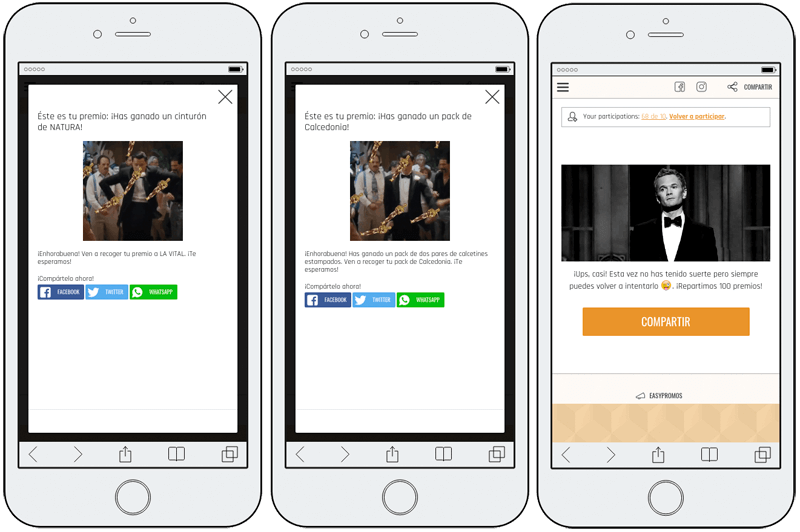 - Configurar un mensaje final que le explique la situación, pero que de pie a otro incentivo, por ejemplo, que pueda entrar a un sorteo final entre los no premiados.