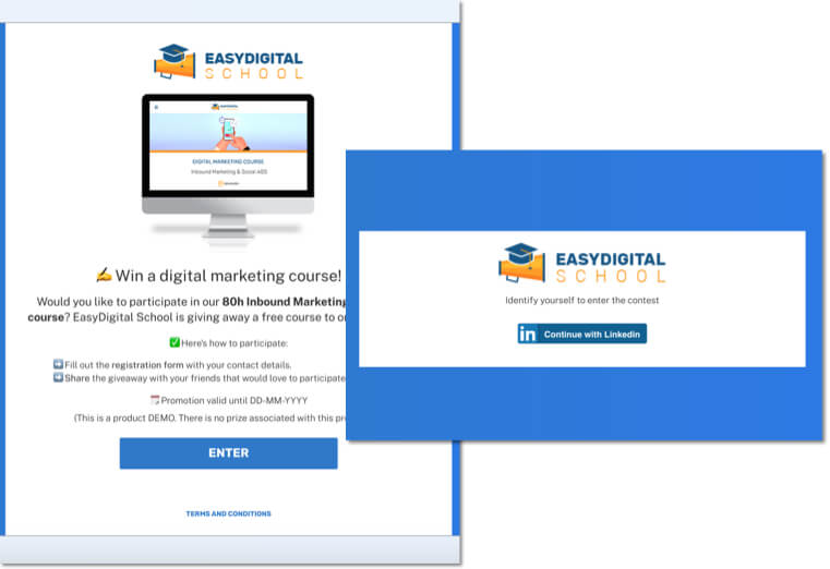 Easypromos doesn’t form part of the LinkedIn Marketing Partner Program. However, we still offer contests, giveaways, and promotions on microsites or landing pages outside LinkedIn. Our apps allow you to generate engagement, visibility and leads.