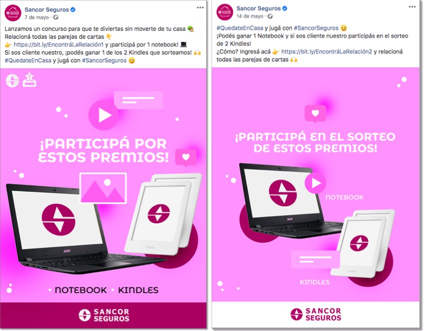La aseguradora lanzó una acción de Social Media Marketing lúdica para entretener a los usuarios durante la cuarentena y a su vez para premiar a los clientes de la empresa. La acción fue trabajada bajo el lema: «Quedate en casa y jugá con Sancor Seguros».